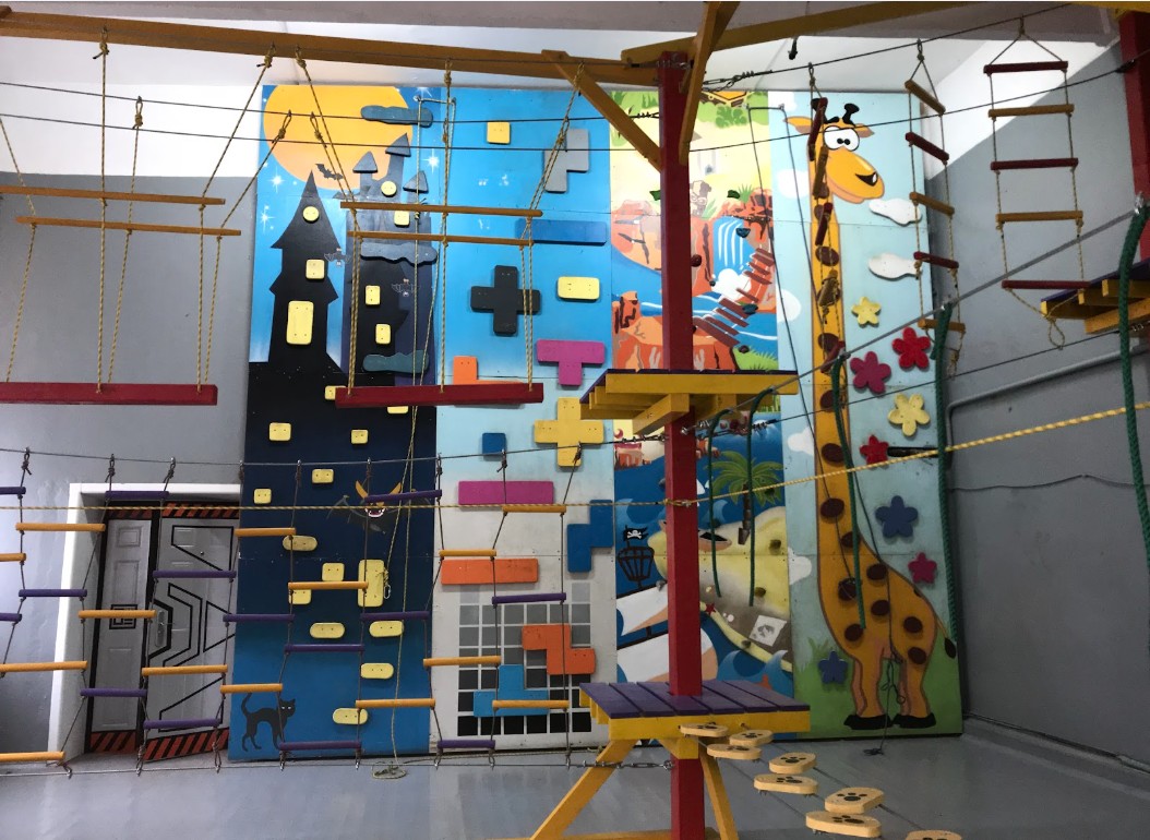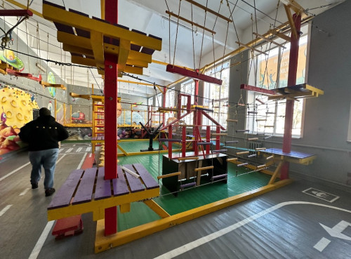 Веревочные маршруты(2 трассы), скалодром ( 4 стенки ), лазертаг арена ( 2 площадки), батутная арена