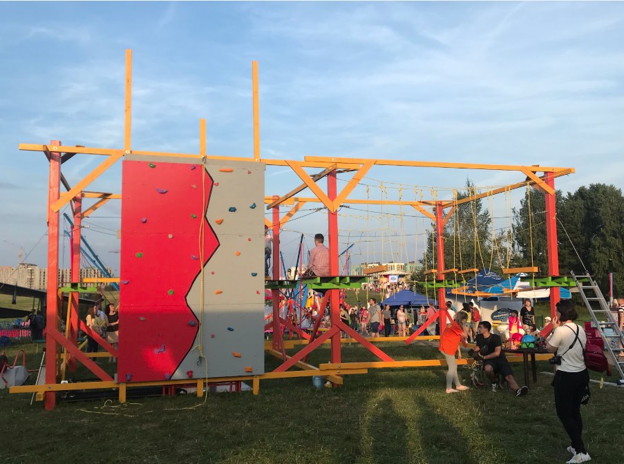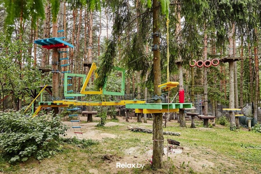 Веревочные маршруты (9 трасс), скалодром (5 стенок), троллей (3 трассы), лазертаг арена (3 площадки), пейнтбол арена (2 площадки), батутная арена, беседки